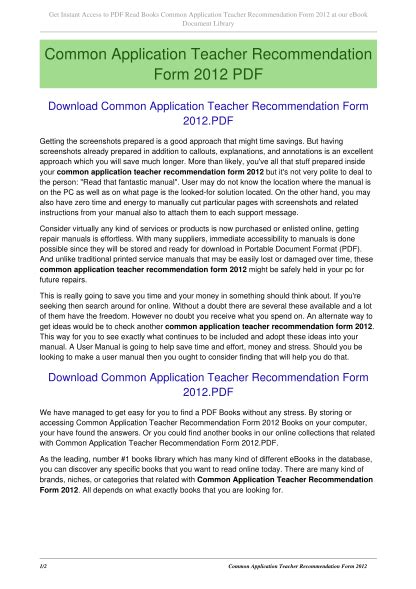 | Bestandsnaam: Common Application Teacher Recommendation Form 2012 .pdf Grootte: 7242 KB Type: PDF, ePub, eBook |